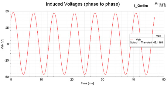 In Figure 6, the induced voltage between phases has been analyzed in Maxwell 2D as expected, yielding 48 VDC.