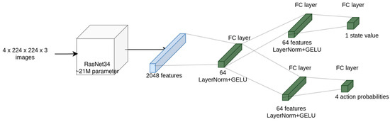 Once the visual features are prepared, they go to the decision-making system. This system uses fully connected networks to handle policy (choosing actions) and value functions (estimating the benefits of actions). The agent uses a reinforcement learning algorithm called Proximal Policy Optimization (PPO) to connect visual data to car control actions like steering, accelerating, and braking. These actions are sent back into the simulation, creating a feedback loop between perception and action.