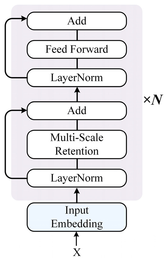 RetNet is a novel autoregressive infrastructure proposed by Microsoft Research [28], which consists of alternating stacks of MSR networks and feedforward neural networks (FFNs), and its specific model architecture is shown in Figure 6.