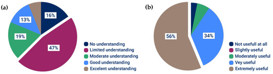 Responses to the questions about participants’ dyslexia awareness. (a) How would you rate your understanding of dyslexia? (b) How useful do you consider the VR experience in raising awareness about dyslexia?