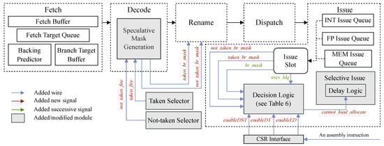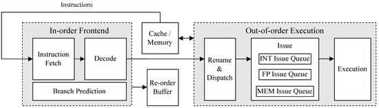 - Zhao, J.; Korpan, B.; Gonzalez, A.; Asanovic, K. Sonicboom: The 3rd generation berkeley out-of-order machine. In Proceedings of the Fourth Workshop on Computer Architecture Research with RISC-V, Virtual, 29 May 2020; Volume 5. [Google Scholar]