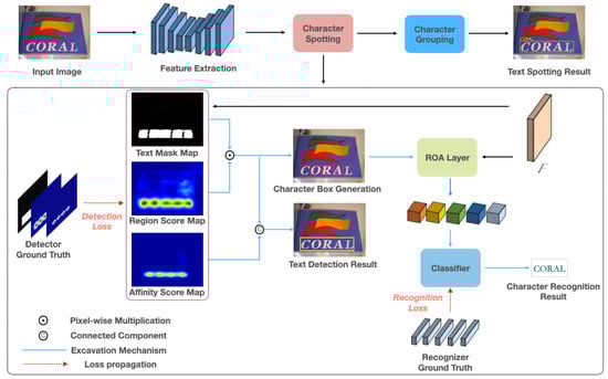 - Baek, Y.; Shin, S.; Baek, J.; Park, S.; Lee, J.; Nam, D.; Lee, H. Character region attention for text spotting. In Proceedings of the European Conference on Computer Vision, Glasgow, UK, 23–28 August 2020; Springer: Berlin/Heidelberg, Germany, 2020; pp. 504–521. [Google Scholar]