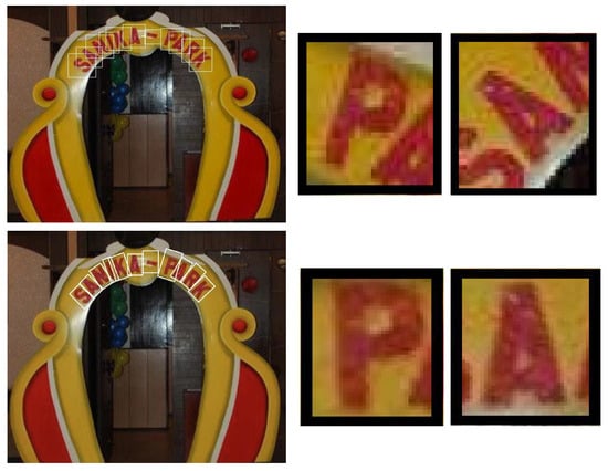 - Hu, H.; Zhang, C.; Luo, Y.; Wang, Y.; Han, J.; Ding, E. WordSup: Exploiting word annotations for character-based text detection. In Proceedings of the 2017 IEEE International Conference on Computer Vision (ICCV), Venice, Italy, 22–29 October 2017; pp. 4950–4959. [Google Scholar]