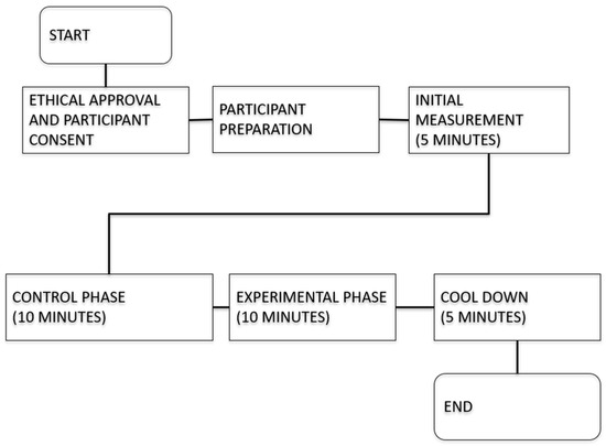 The experimental design commences with introducing the study to participants. During this phase, participants receive a general briefing on the experiment’s purpose and procedure (Figure 1). Following the introduction, the study proceeds to the ethical approval stage, during which participants sign a consent form that outlines the study’s purpose, procedures, potential risks, and benefits. Participants are encouraged to ask questions before signing the consent form, ensuring that they understand their rights, including their ability to withdraw from the study at any time without consequence [20,21].