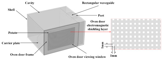 - Liu, G. Optimal design of anti-leakage choke structure for microwave oven door based on two-port transmission line model. New Ind. 2019, 9, 88–90. (In Chinese) [Google Scholar] [CrossRef]