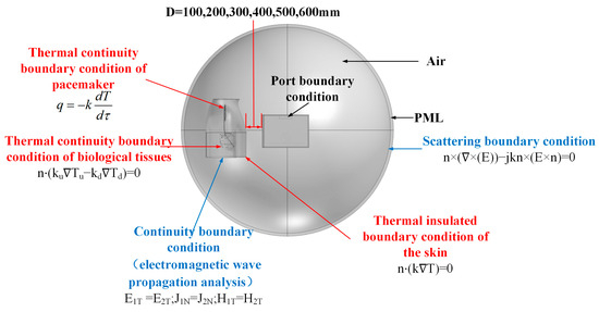 - Electromagnetic compatibility of cardiac pacemaker: The temperature increase, the induced electric field intensity, and the induced voltage of the cardiac pacemaker were also inversely proportional to the distance between the human thoracic cavity and the microwave source, and directly proportional to the size of the microwave oven door gap. The induced electric field intensity, temperature increase, and induced voltage of the cardiac pacemaker reached their highest values when the distance was 100 mm and the oven door gap was 0.3 mm, which were 27.7 V/m, 0.000892 °C and 5.322 mV, respectively. However, the induced electric field intensity and temperature increase remained below the immunity recommended by IEC 60601-1-2 (28 V/m) and the temperature rise standard recommended by the ISO 14708-3 standard (+2 °C). ISO 14117 recommends setting the sensing sensitivity of the unipolar pacemaker to 2 mV. Some manufacturers set the sensing sensitivity according to the characteristics of their products at the factory. For example, Medtronic’s unipolar pacemaker is set to 2.8 mV [32], and Biotronik’s unipolar pacemaker is set to 2.5 mV [33]. The maximum induced voltage used in this work was 5.322 mV. This value already exceeded the sensitivity of the aforementioned pacemakers. We hope that this conclusion is helpful to those involved in research.