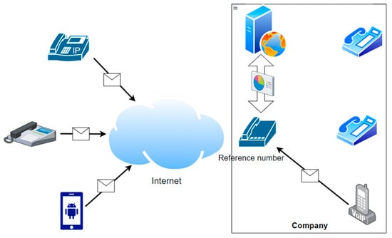 There has been a long-standing demand for secure VoIP communication between private companies and public institutions. Therefore, numerous encryption mechanisms have been designed and adopted to protect end-to-end communication. These encryption mechanisms require the establishment of a session between two user agents, in which the two user agents exchange certificates containing their public keys. That is, callers must remember the callee’s phone number to initiate a dial-up call. This presents a significant inconvenience for users who must communicate with a large number of customers or colleagues, as well as for engineers who are traveling or working remotely and need to temporarily reach out to operators in the data center. To offer users more convenient VoIP services, the need for virtual reference phone numbers arises. Figure 1 illustrates the demand structure. The diagram is drawn based on our real-world application scenario. Incoming and outgoing calls will be routed through a VoIP exchange, which manages reference numbers to efficiently establish calls. Within the company, the deployment is straightforward, as all telephone devices are wired to VoIP gateways, which connect to the exchange. Outside the company, users can initiate call setup using wired or wireless VoIP devices. Wired phone devices communicate through the internet provided by the local ISP, which is generally more stable. However, although wireless phone devices also rely on the internet provided by the local ISP, their operating environments are more complex, such as basements, elevators, vessels, and mountainous areas, which may increase the risk of call setup failure. Therefore, this paper focuses on the effectiveness of the reference number mechanism, while the influence of wireless end devices is beyond the scope of discussion. The reference phone numbers are virtual, meaning corresponding physical certificates cannot be exchanged to negotiate session keys. Therefore, to address this need, this article makes the following contributions: