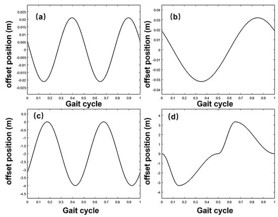 Trajectory function of human walking: (a) forward/backward panning; (b) lateral translation; (c) forward/backward rotation; and (d) left/right rotation.