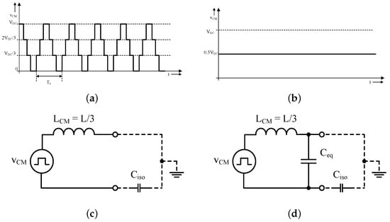 The value of obtained above is negligible compared with the DC component of voltage in the proposed circuit with split capacitors. Another source of CM currents is the coupling of the switching noise with the parasitic capacitance of the insulating materials.