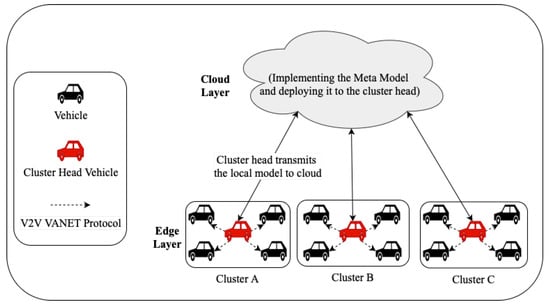 Machine learning (ML) has great potential to improve road safety by predicting hidden patterns that lead to traffic accidents. Predictive analytics can analyze extensive historical traffic data to identify accident patterns and trends, enabling targeted interventions and preventive measures [2,3,4]. Real-time monitoring systems, powered by ML algorithms, quickly identify hazardous situations on the road, such as reckless driving or pedestrian crossings, triggering immediate alerts for corrective actions [5,6]. ML enhances self-driving car technology by reducing human error. It learns from various driving situations, helping vehicles make better decisions to avoid collisions [7]. The application of federated learning in transportation has paved the way for predicting traffic flow and managing heavy traffic on railway systems [8,9,10]. However, developing a FL-based system with VANET technology is still in its early stages.