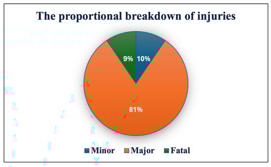 The proportional breakdown of injuries that occurred in 2014 and 2015.
