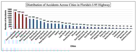 Florida’s distribution of accidents across cities in Florida’s I-95 highway.