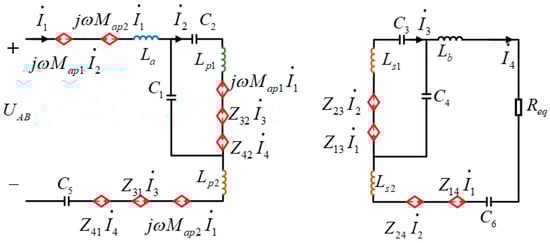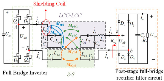 To further study the effect of the shielding coil on the system efficiency, a power analyzer is used for measurement when there is no shielding coil, the input power of the system is 668.52 W, the output power of the system is 628.43 W, and the efficiency of the system is 94%. When the shielding coil is used and the inductance of the shielding coil La is taken to be the optimal inductance L0, the input power of the system is 679.04 W, and the output power of the system is 636.83 W, and the efficiency of the system is 93.78%. The system efficiency is 93.78%, and it is calculated that the system efficiency is reduced by 0.22% after using the optimized shielding coil. Through the coil shielding method in this paper, the shielding effect of the system can still be effectively improved without significantly reducing the system’s efficiency.