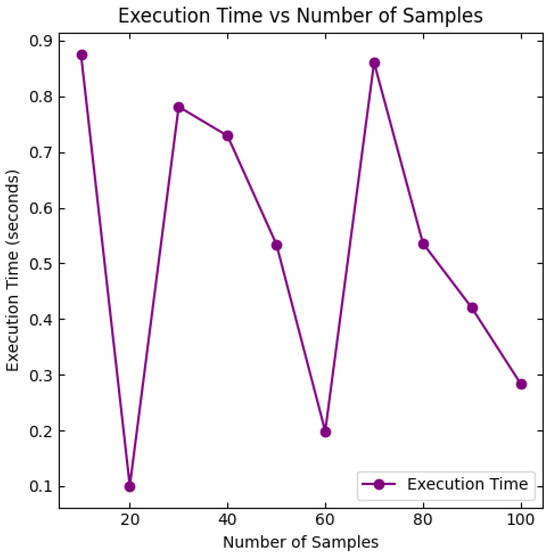 Figure 19 shows the execution times required by the proposed approach to process different sample sizes, hence showing high computational efficiency. In the beginning, the execution time has small fluctuations because the model has to adapt to varying complexities in the samples. However, with the increase in the size of the dataset, there is a gradual increase in execution time, which is understandable due to the increased amount of computation required for processing large amounts of data. However, it remains within reasonable limits and hence is computationally feasible in real-time applications.