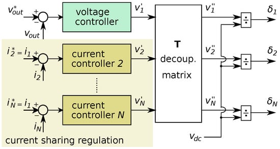 It is important to mention that, if the master sub-converter fails, the regulation scheme of Figure 3 fails if , as now . This critical problem can be solved by commanding the current-regulated units with the load indicator , which represents the averaged per-unit current.