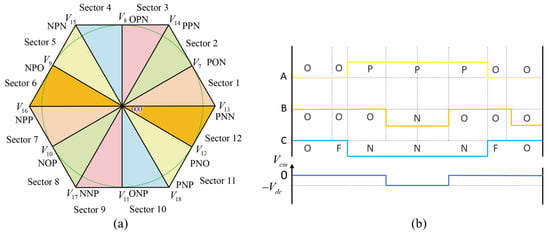 (a) Space vector diagram. (b) The switching state corresponds to the common-mode voltage value.