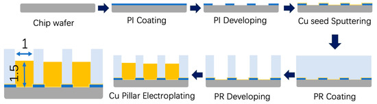 Process Flow for Cu Pillar Electroplating on Chip Wafer.