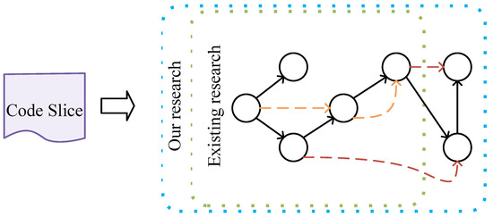 Using text-based methods to process vulnerabilities can easily lead to a loss of semantic structural features, which affects the detection results. Using graph-structured representations of data for deep learning training allows the complete structural information of source code to be captured to address the issue of insufficient extraction of dependency relationships. For example, Devign [25] is a vulnerability detection model based on GNNs. It represents the code as a graph structure of an AST and uses a GNN to capture dependency relationships in the code, thereby detecting potential vulnerabilities. Another important study is that on LineVD [26], in which the vulnerability detection problem is converted into a node classification task and GATs are used to learn the code’s topological structure, capturing the control and data dependency relationships between code statements. SCL-CVD [27] is a vulnerability detection method that integrates supervised contrastive learning with low-rank adaptation techniques. In the code representation learning module, it leverages the pre-trained language model GraphCodeBERT to generate code embedding vectors and employs supervised contrastive learning to enhance its generalization capability, thereby improving the accuracy of code vulnerability detection. However, in the research mentioned above, the serialized text-based methods focus on capturing the sequence and context information of the code but often ignore structured dependencies. While graph-structured methods can capture dependency relationships, they lack precise descriptions of code execution order. Thus, there are deficiencies in both methods when it comes to feature extraction. As a result, neither method effectively retains both the syntax and semantic information of the source code.