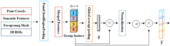 Fusing the candidate proposals generated in the first stage, the original point features, and the point-level features obtained from the feature extraction module, as well as the features extracted from the foreground point segmentation layer. Subsequently, these fused features are input into the point cloud region pooling layer, where pooling operations are performed on each point and its associated features. During this process, points and their features within a slightly expanded bounding box area are retained, thus forming a merged feature set. This feature set is then input into the SGE Attention module to further enhance its feature representation and highlight key regions.
