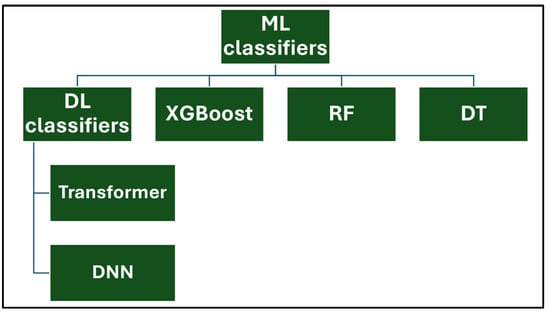 The DT classifier struggles significantly in classification SQL Injection attacks within the original dataset, with a low F1-score of 0%. This implies that the classifier was unable to correctly classify any instances of this type in the original dataset. A likely explanation for this failure is the class imbalance, where SQL Injection attacks are underrepresented in the dataset, or the lack of sufficient training samples. All oversampling techniques (ADASYN, Random, and SMOTE) significantly improved performance, achieving an F1-score of 1 in both cases (with and without PCA), indicating the effectiveness of oversampling in handling the imbalance for this attack type. In summary, the inability of the DNN classifier to predict SQL Injection attacks in the original dataset highlights the critical role of oversampling techniques in addressing class imbalance. By balancing the dataset, oversampling allows the classifier to learn more discriminative patterns, leading to perfect classification in this situation. In addition, the absence of enhancement using PCA indicates that dimensionality reduction alone cannot resolve data representation issues.