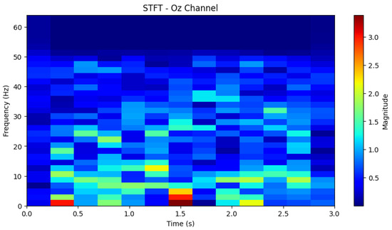Since EEG signals naturally exhibit non-stationary behavior, meaning that their spectral content varies over time, the STFT spectrogram effectively captures both transient and periodic changes in neural oscillations.