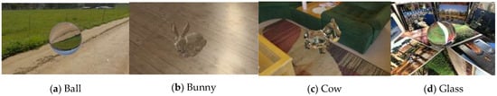- Ihrke, I.; Kutulakos, K.N.; Lensch, H.P.; Magnor, M.; Heidrich, W. Transparent and Specular Object Reconstruction. In Proceedings of the Computer Graphics Forum; Wiley Online Library: Hoboken, NJ, USA, 2010; Volume 29, pp. 2400–2426. [Google Scholar]
