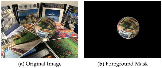 - Chuang, Y.-Y.; Zongker, D.E.; Hindorff, J.; Curless, B.; Salesin, D.H.; Szeliski, R. Environment Matting Extensions: Towards Higher Accuracy and Real-Time Capture. In Proceedings of the 27th Annual Conference on Computer Graphics and Interactive Techniques, New York, NY, USA, July 23–28 2000; pp. 121–130. [Google Scholar]