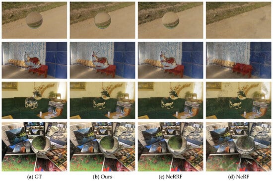 - Chen, X.; Liu, J.; Zhao, H.; Zhou, G.; Zhang, Y.-Q. Nerrf: 3D Reconstruction and View Synthesis for Transparent and Specular Objects with Neural Refractive-Reflective Fields. arXiv 2023, arXiv:2309.13039. [Google Scholar]