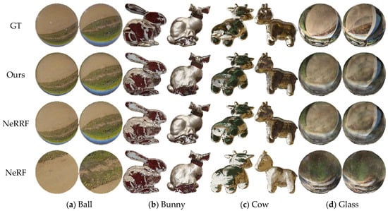 - Srinivasan, P.P.; Deng, B.; Zhang, X.; Tancik, M.; Mildenhall, B.; Barron, J.T. Nerv: Neural Reflectance and Visibility Fields for Relighting and View Synthesis. In Proceedings of the IEEE/CVF Conference on Computer Vision and Pattern Recognition, Nashville, TN, USA, 20–25 June 2021; pp. 7495–7504. [Google Scholar]