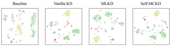 Comparison of T-SNE visualizations for knowledge distillation methods under the Malimg dataset.