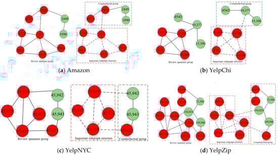 - CFG1 replaces the graph neural networks (GNNs) model in the generator with graph attention networks (GATs) [47]. CFG1 initially utilizes a counterfactual generation model that uses GAT as a generator to obtain counterfactual groups, and then compares the differences of detection results between the counterfactual groups and candidate groups to search the key subgraph structures for explaining the detection results.