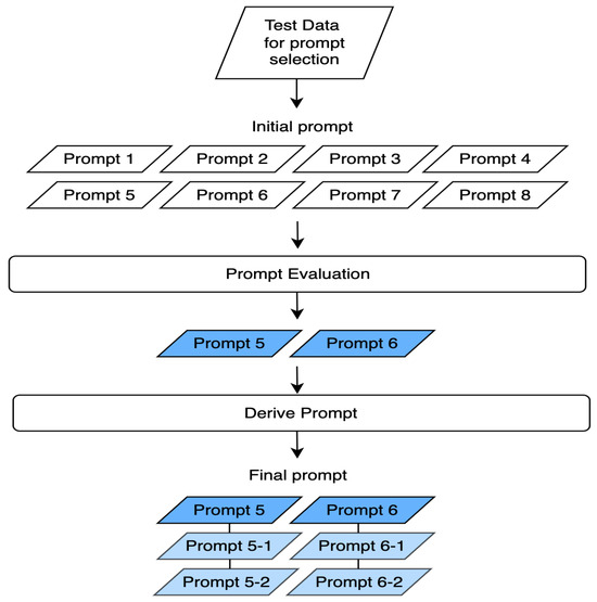 Based on these results, we selected Prompt 5 and Prompt 6 as the top-performing prompts. To further refine our approach, we created six additional prompts by modifying these two—generating two variations for each prompt (prompt5-1, prompt5-2, prompt6-1, and prompt6-2). These processes are illustrated in