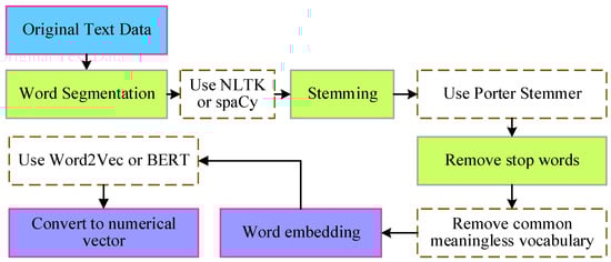Text data were initially processed using the spaCy tool (version 3.6.0) to segment the text into words or phrases. This step ensured that each word was handled individually, facilitating subsequent feature extraction. The Porter Stemmer algorithm was then employed to reduce words to their root forms. Stemming aided in decreasing vocabulary diversity, thereby enhancing the model’s learning efficiency. Common stop words, such as “the” and “is”, were removed. This elimination of stop words helped the model focus on significant vocabulary, improving the relevance of the generated content. The processed text was converted into numerical vectors using a pre-trained word embedding model. Word embeddings transformed the text into high-dimensional vectors, making it more manageable for the model.