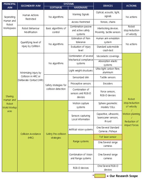 - Alonso, F.; El Saddik, A. A Survey on Safety in Human-Robot Collaboration: Current Issues and Future Directions. J. Robot. 2018, 2018, 1–13. [Google Scholar]