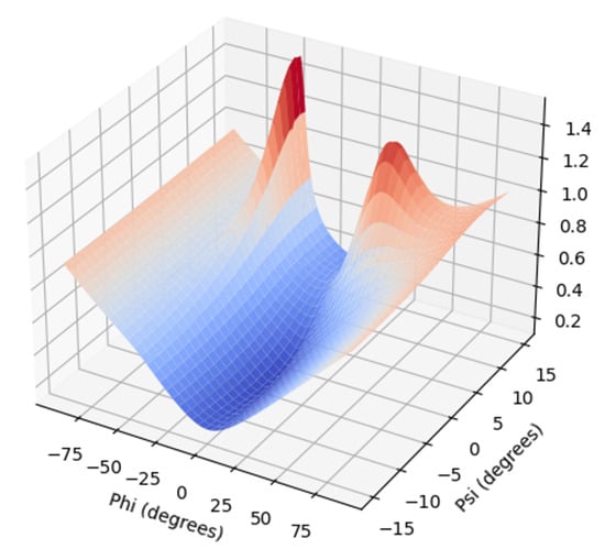 Therefore, the appropriate value of should be determined through several simulations. And the subscripts i and j denote the indices of the vertical angle and the horizontal angle data segments, respectively. This distinction accounts for the possibility that the horizontal and vertical angular resolutions may differ. This formulation represents the Euclidean distance in angular space between the goal direction and the current sensor reading , scaled by . By minimizing this value, the system generates a movement trajectory that guides the robot toward the target orientation.