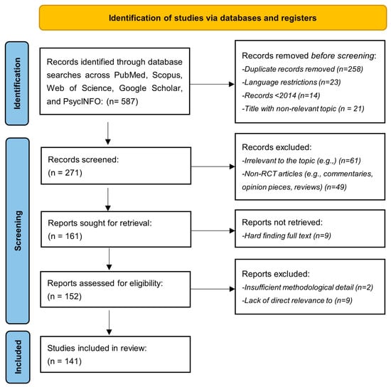 Ultimately, 141 studies were included in the final review. This process reflects a systematic and rigorous approach to screening and selecting studies, ensuring transparency and adherence to PRISMA guidelines. The included studies form the basis for the synthesis and further analysis (Figure 1).