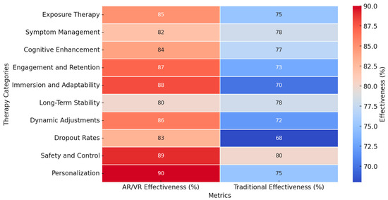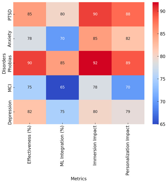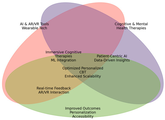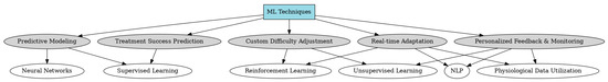 Incorporating machine learning (ML) in AR/VR-based cognitive treatments has also transformed mental health treatment by allowing the dynamic adjustment of treatment protocols. ML algorithms process large volumes of patient data obtained from physiological sensors, eye-tracking equipment, and behavioral response measures to personalize interventions in real time. For example, exposure therapy for phobia can automatically adjust levels of exposure for patients with phobia in real time according to physiological feedback to maximize therapeutic engagement without saturation with distress [13,14,15]. Furthermore, predictive analytics enabled by ML can recognize patterns of patient progress and provide clinicians with data-informed suggestions for how to tailor treatment plans and optimize long-term outcomes [16,17,18].
