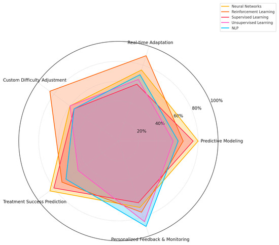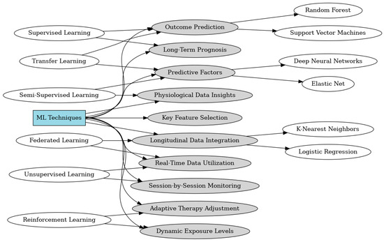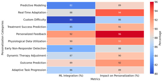 Incorporating ML with AR/VR-based cognitive therapies has transformed treatment by enabling real-time patient behavior and response processing. It augments behavior therapy, serious gaming software, and rehabilitation programs by optimizing treatments according to a subject’s requirements based on dynamic data analysis [75,76,77,78,79]. Processing a large volume of behavioral data in real-time enables accurate therapeutic adjustments, enhancing patient motivation and treatment success. However, this integration poses technical and practical problems that must be solved methodically [80,81,82,83].