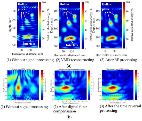 - Ge, L.; Li, Q.; Wang, Z.; Li, Q.; Lu, C.; Dong, D.; Wang, H. High-Resolution Ultrasonic Imaging Technology for the Damage of Concrete Structures Based on Total Focusing Method. Comput. Electr. Eng. 2023, 105, 108526. [Google Scholar] [CrossRef]