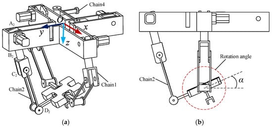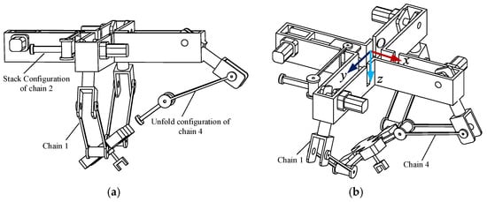 Branch chain 4 is connected to the operating object. (a) Configuration I; (b) Configuration II.