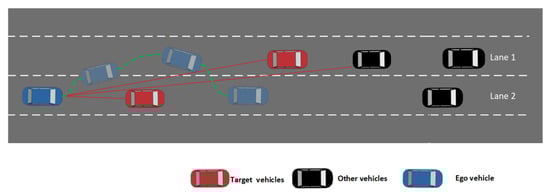 In this paper, we focus on overtaking scenarios on dual carriageways as depicted in Figure 1. Specifically, the highway segment consists of two parallel lanes, Lane 1 and Lane 2. The controlled vehicle, referred to as the ego vehicle (displayed in blue), is equipped with sensors such as cameras to gather information about the surrounding vehicles’ motion states and the environment. The vehicles being overtaken ahead are referred to as target vehicles (displayed in red), while other vehicles on the road are referred to as other vehicles (displayed in black). Our goal is to design a suitable and feasible control strategy that enables the ego vehicle to perform high-speed overtaking with high stability and path-tracking accuracy while ensuring safety based on the conditions of the preceding vehicles and the lanes.