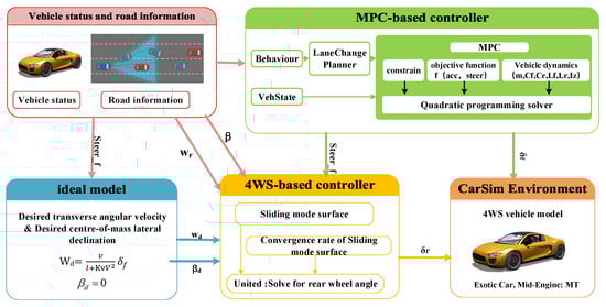 General schematic of the overall control strategy with MPC and 4WS controllers with ideal models.