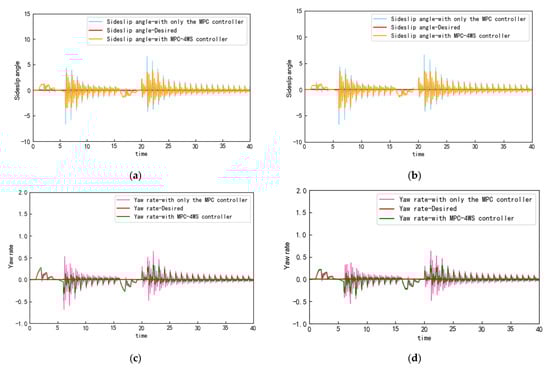 In Table 2, we provide a side-by-side comparison of the single MPC controller and the proposed MPC-4WS hybrid controller. As shown, the single MPC controller primarily focuses on achieving path-tracking accuracy through front-wheel steering control, whereas the MPC-4WS hybrid controller enhances performance by incorporating rear-wheel steering. This integration not only improves path tracking but also significantly boosts vehicle stability, particularly under high-speed and dynamically changing conditions. The MPC-4WS approach incorporates additional constraints and refined dynamic models, resulting in faster convergence and greater robustness against nonlinear uncertainties and disturbances. Although this comes with a slight increase in computational complexity, the overall performance benefits—demonstrated through metrics such as maximum lateral error, yaw rate deviation, and convergence time—clearly illustrate the advantages of our proposed method over the traditional single MPC approach.