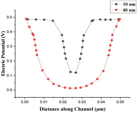 Potential distribution of 10 nm and 40 nm Si-based CGAA-JLFET.