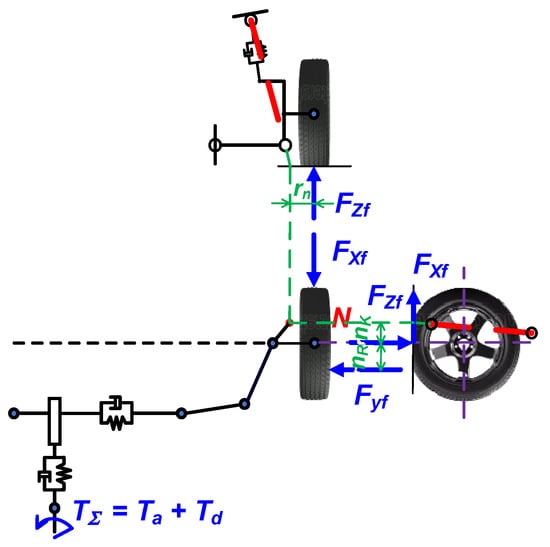 Considering the linearly deformed tire, the lateral tire forces are defined as follows [,,]: