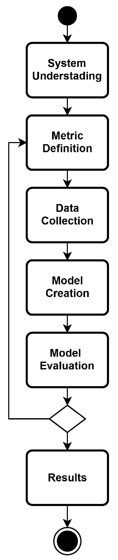 The fifth step corresponds to the model evaluation. For instance, a Design of Experiments (DoE) approach can be employed to systematically explore the effects of different model parameters. Another possibility is to evaluate the impact of the frequency of data collection on system performance and availability. If the respective results do not provide the expected estimates, the designer is redirected to the second step to review the defined metrics, collected data, and the model created. Finally, the last step of the methodology corresponds to the analysis of results. In addition, once the model has proven results, other system configurations can be analyzed.