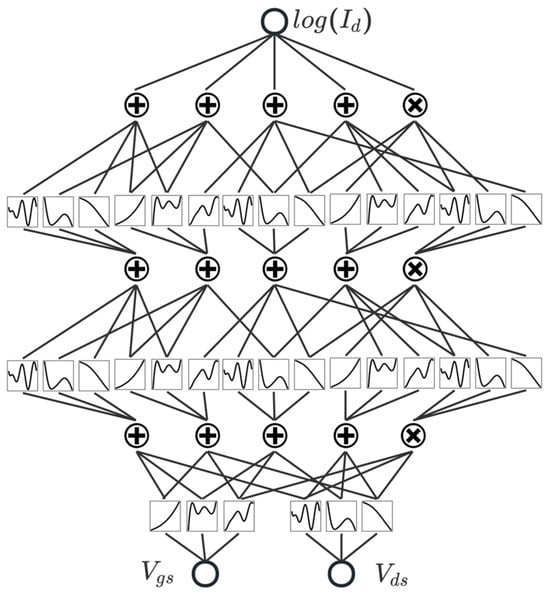 The specific layer structure described above allows the KAN model to capture both additive and multiplicative interactions between the input voltages, providing a robust framework for modeling the complex behavior of transistors.