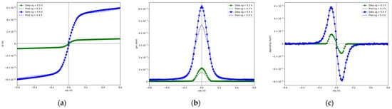 As plotted in Figure 4, the test results are divided into three parts: (a) shows the comparison of the smoothed I–V curve between the KAN model and the SPICE model, (b) illustrates the first derivative of the I–V curve, and (c) presents the second derivative. In all figures, the mathematical expressions generated by the KAN model closely align with the results from the SPICE model, demonstrating near-perfect symmetry in the I–V characteristics.