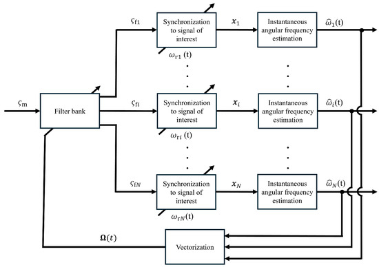 - The filter bank serves the function of a separator, as shown in Figure 1. In the filter bank, signals corresponding to the number N of SoIs are extracted from . The N signals output from the filter bank are input into N frequency entrainment phenomena.
