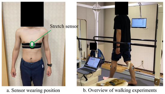 Stretch sensor placement and walking experiment setup.